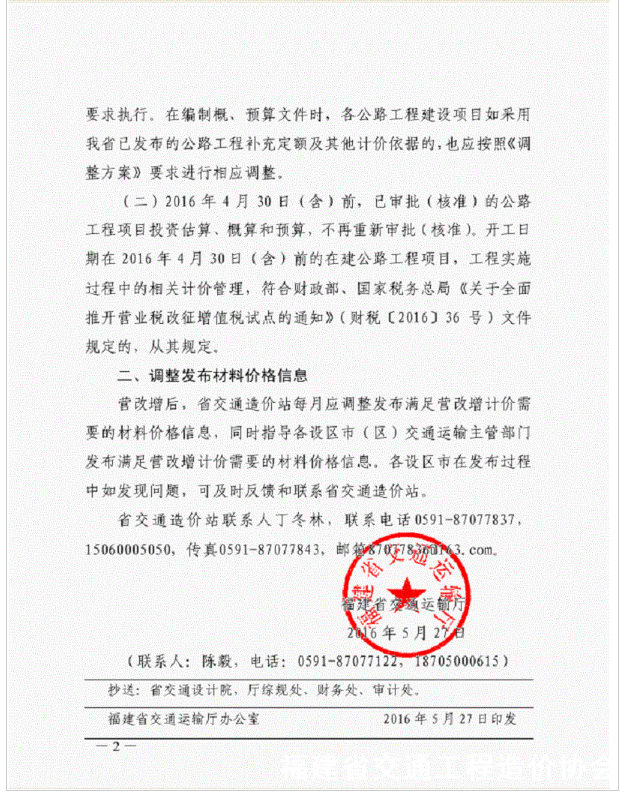 上一篇:关于发布《福建省交通(公路、水运)工程各市主要材料价格信息》(2016年4月份,总第155期)的通知 下一篇:【行业动态】公路工程造价管理暂行办法公布(2016年11月1日起施行)
